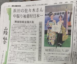 2025年11月18日の山陰中央新報の「山陰社会」面に、佐々木さんの素晴らしい快挙が大きく取り上げられました!🙌