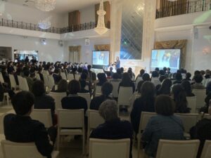 (写真0:会場全景。シャンデリアの下、多くの参加者が熱心に受講している様子)