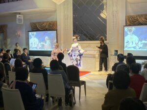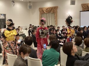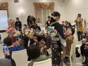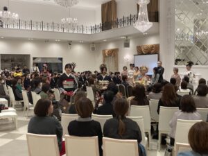 講習会のフィナーレでは、華やかなヘアメイクと衣装で仕上げられたモデルたちが、客席の間をウォーキングしました。 間近で見るプロの作品に、参加者の皆様もスマートフォンを掲げ、熱心に撮影をされていました。会場全体が美のエネルギーに包まれ、大盛況のうちに幕を閉じました。