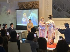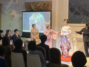 後半は、島根県講師会による「帯結び創作」ステージです。 和装のプロフェッショナルたちが魅せる、ハイクオリティで美しい着姿の数々。サロンワークへ直結する実践的な技術解説もあり、明日からの仕事に活かせるヒントが詰まった時間となりました。